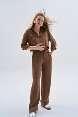 Çağla Yeşili Crop Gömlek Cep Detaylı Pantolon Takım